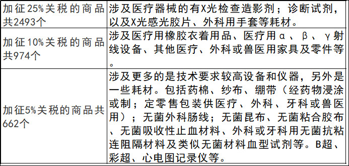 從國務(wù)院發(fā)布的公告來看,公告中提到的600億美元商品清單時發(fā)現(xiàn),涉及醫(yī)療器械的產(chǎn)品不僅有大型醫(yī)用設(shè)備儀器,同時也包括體外診斷試劑耗材!